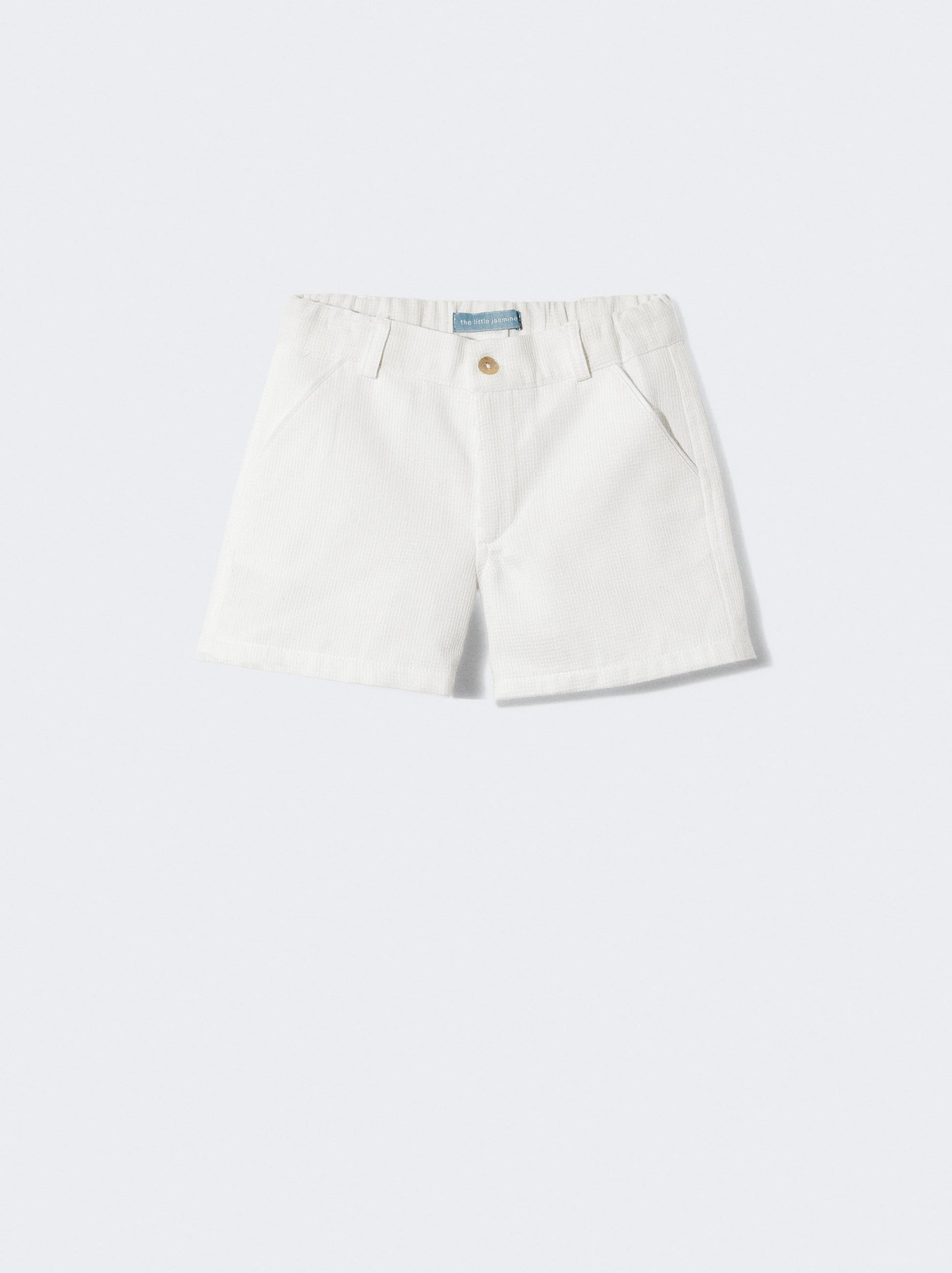 Indispensáveis nos dias de verão, estes calções brancos em tecido texturado 100% algodão são perfeitos para fazer match com qualquer look. Confortáveis e versáteis, contam com um elástico no interior para ajuste da cinta.