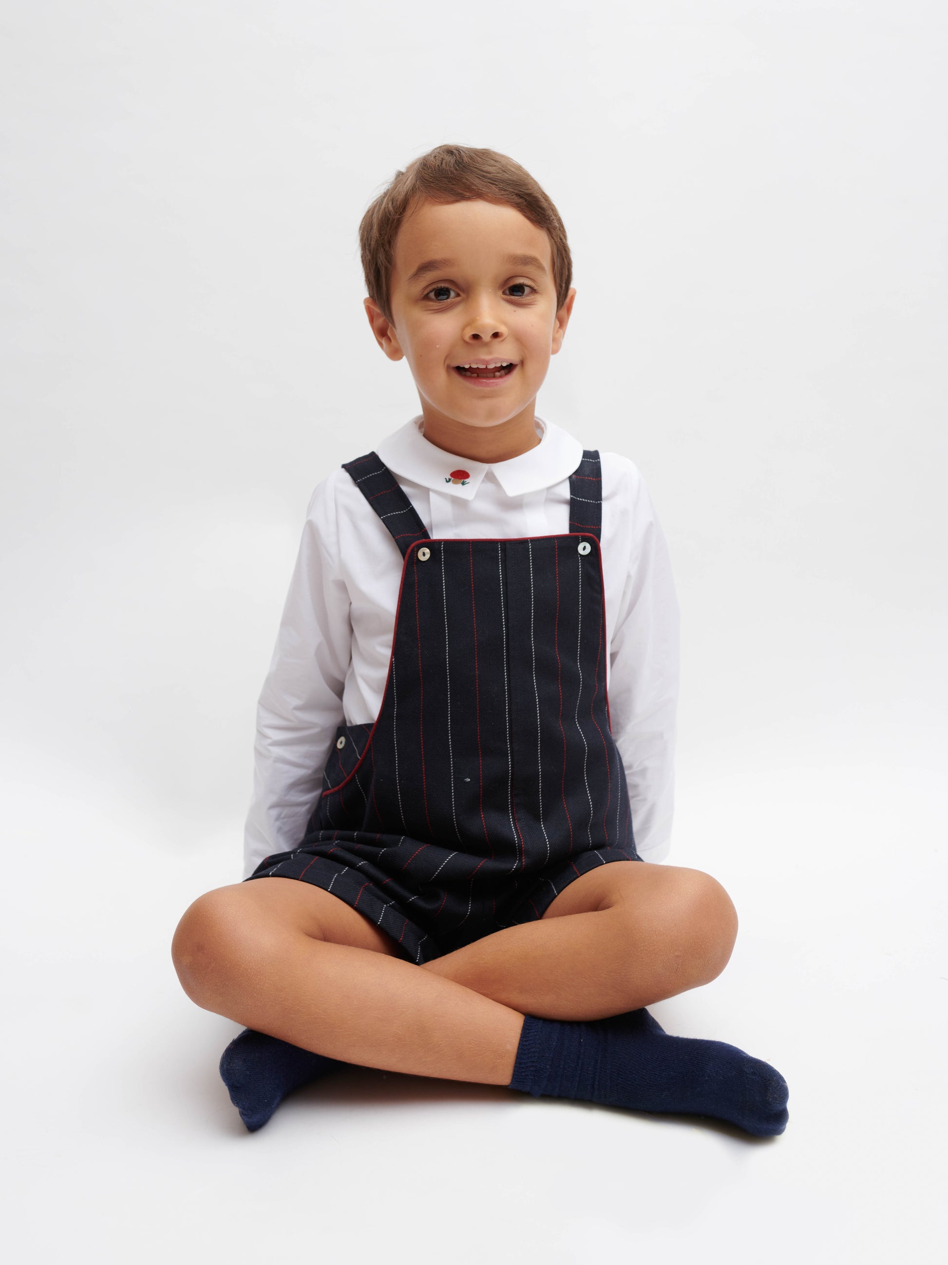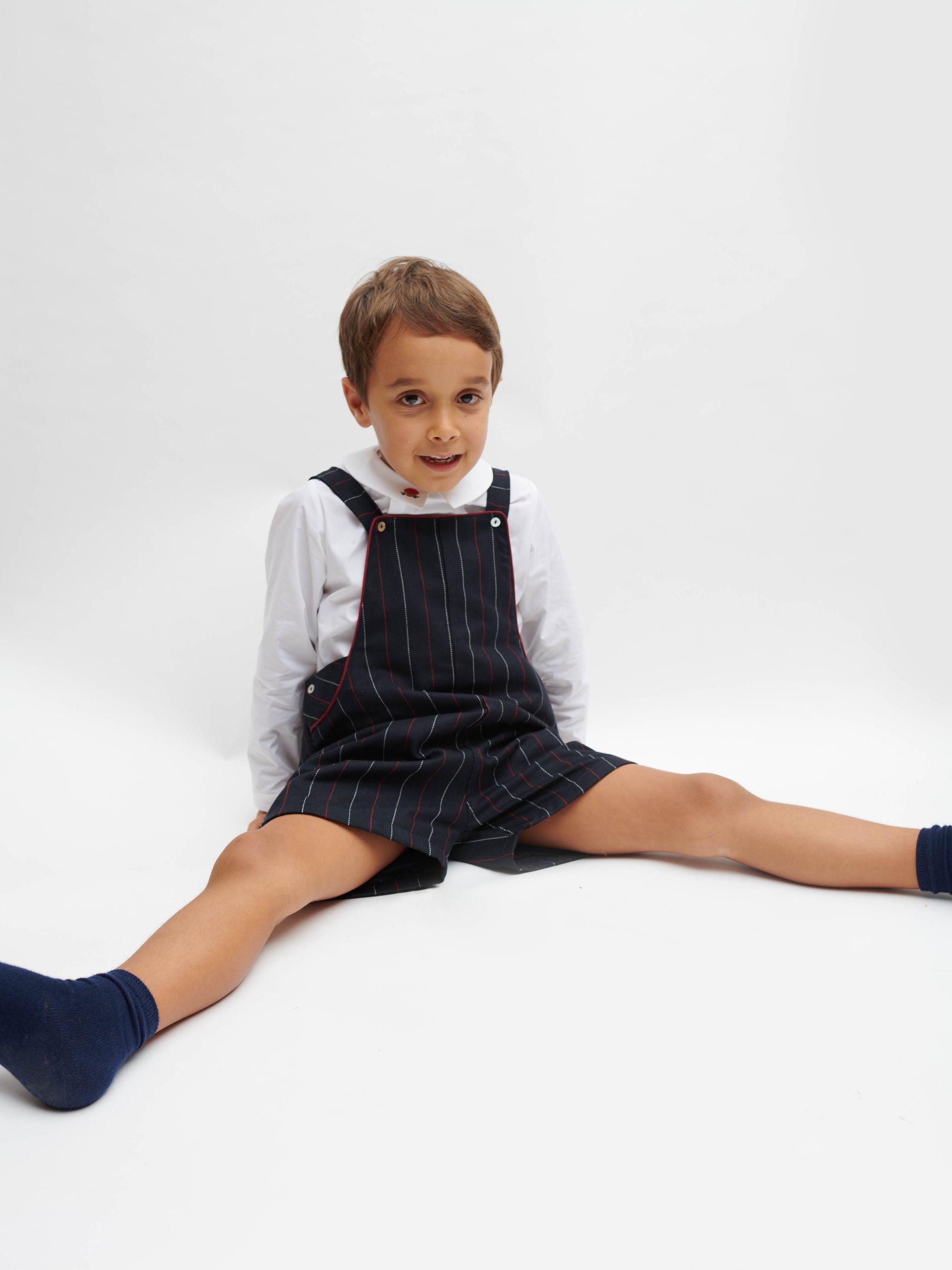 Estas jardieniras azuis marinho com riscas vermelhas e brancas são um clássico intemporal. Conjugue-as com as nossas blusas de bordado icónicas. O forro interior e os botões madre-perola conferem-lhe ainda o toque de qualidade e elegância. Todas as jardineiras até aos 3 anos contam ainda com molas no interior das pernas para serem ainda mais práticas!