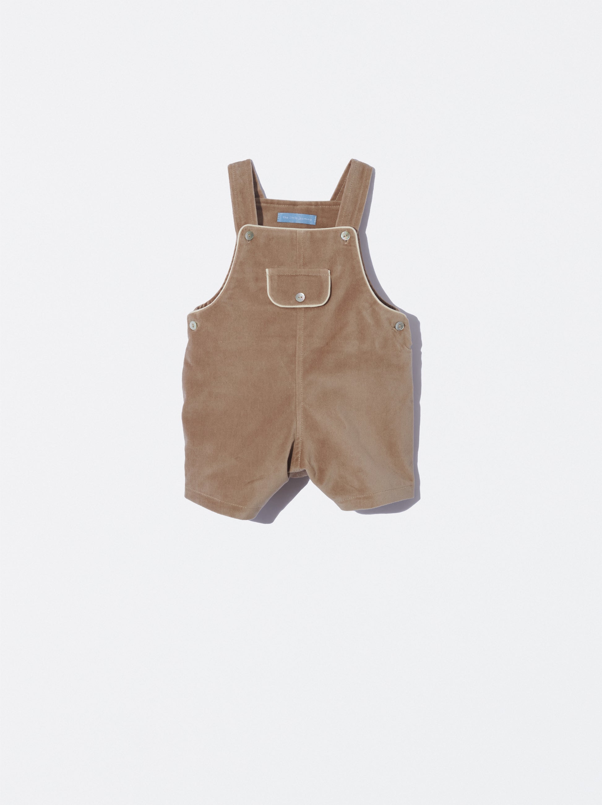 Jardineiras em veludo bege