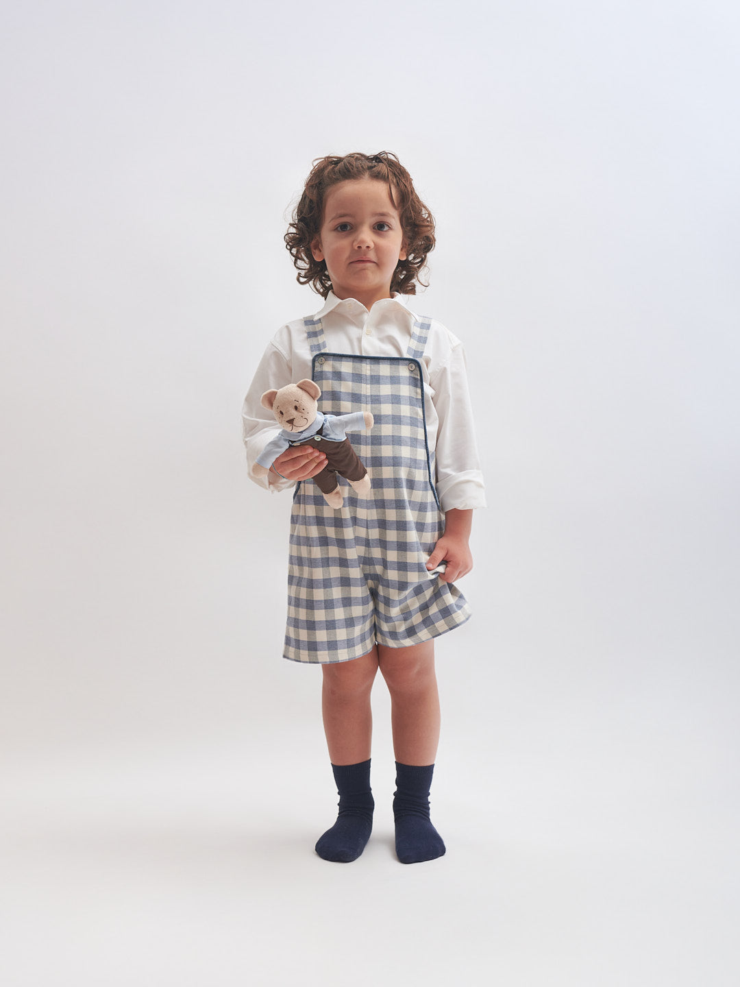 Em flanela 100% algodão estas jardineiras têm um toque macio e quentinho. O detalhe de veludo confere-lhe a elegância o que tornam esta peça muito especial! Estas jardineiras são também forradas no interior com tecido 100% algodão.