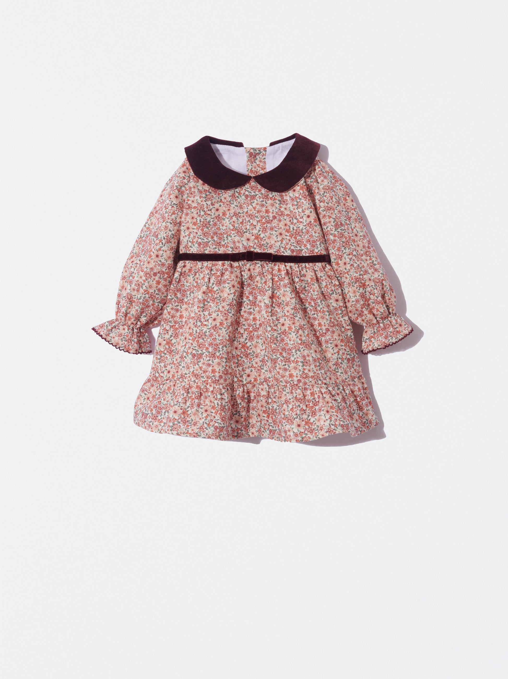 Vestido florido com gola de veludo